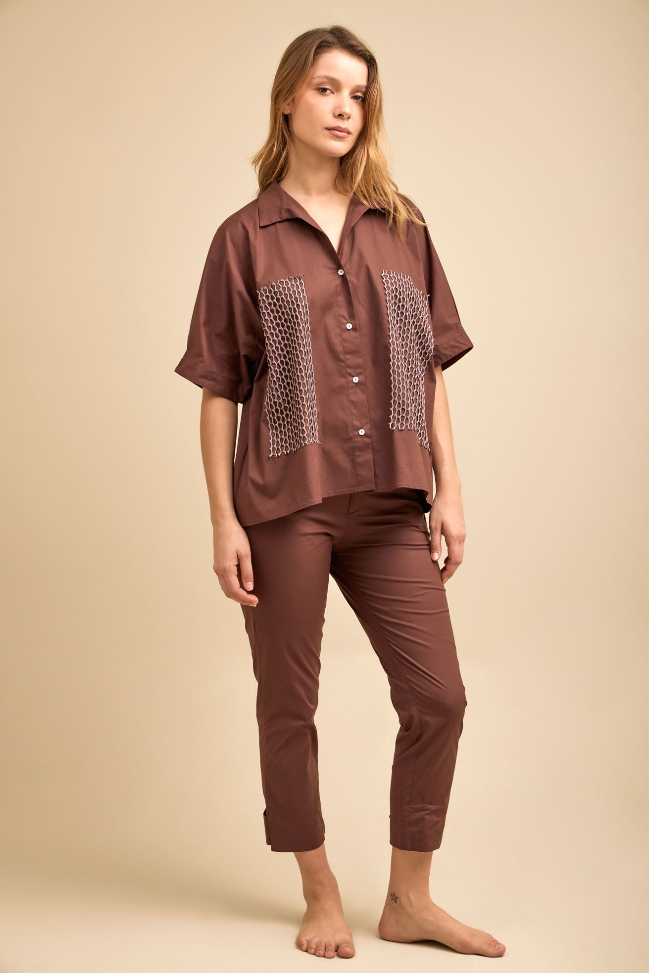 Pantalón al tobillo, tiro medio con cierre, y resorte posterior para mayor ajuste y comodidad y bolsillos traseros de parche con tapa. Recto arriba y ligeramente más angosto abajo con 2 posiciones en la bota para usar pitillo o recto dependiendo de los zapatos con que lo combines. Super confortable, pero a la vez con mucho estilo para sentirnos cómodas, pero bien arregladas. ¡De esos básicos infaltables que combinan con todo y nos resuelven cualquier necesidad!