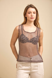 Top manga sisa, escote redondo. Femenina, ideal para usar con un top o blusa de tiras por debajo o encima de las camisas y combinar con prendas informales como jeans o shorts o más formales como pantalones o faldas.