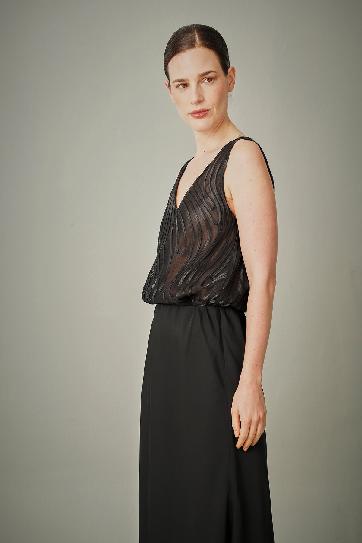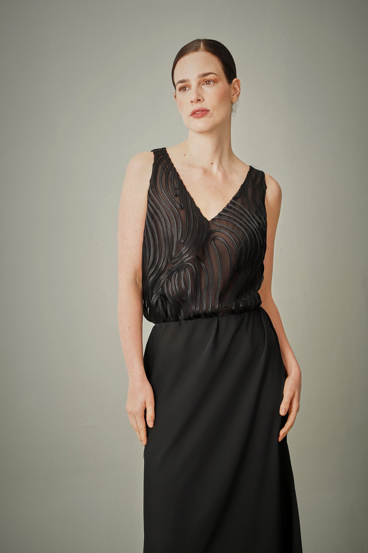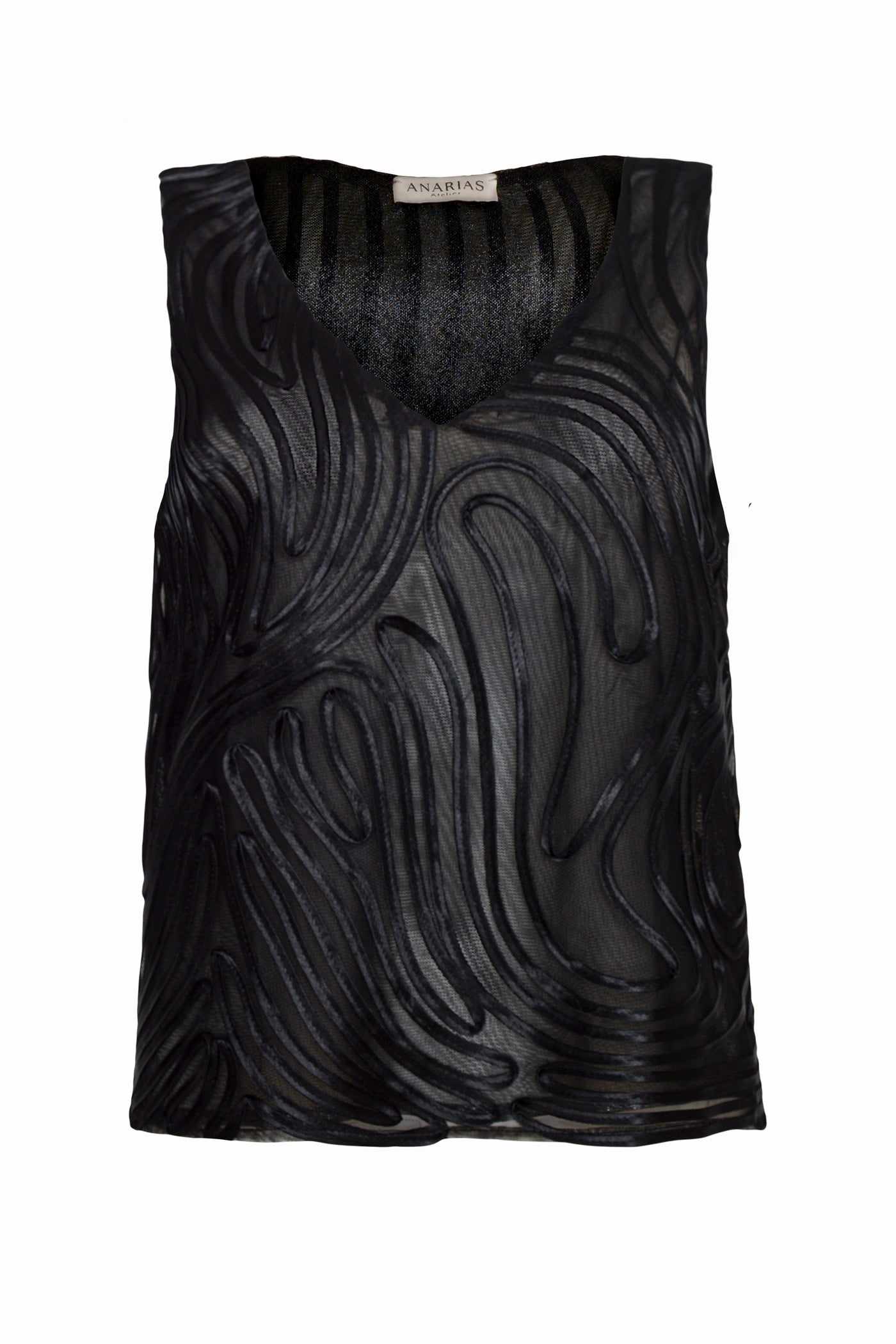 Top manga sisa, escote en V, decorada con sesgos a tono adelante y atrás y forrada en tul para reducir un poco su transparencia. Súper delicada, sexy y femenina, para usar con prendas informales como jeans o más formales como pantalones o faldas para obtener un look super elegante y para celebraciones.
